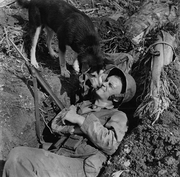 - Dog With Marine In Foxhole, Saipan, 1944